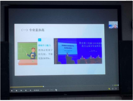 程峰老师通过线上讲座的形式,向同学们介绍了教学名师应具备的素质以及特质,并结合具体案例分享了如何从学生变为老师,进而成为一名优秀名师的方法。