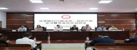 9月23日下午3点,yl8cc永利官网法学系东校区模拟法庭召开实习暨毕业论文工作动员会。学院党总支书记杨家骏,院长刘余香,党总支副书记罗耒英,副院长罗文正,教学负责人喻冰峰,法学系主任赵晓慧,教务秘书许红燕,法学及知识产权专业全体教师,2022级辅导员蒋秋琼出席,2022级全体学生参会。会议由罗文正主持。