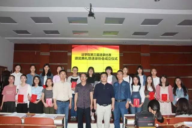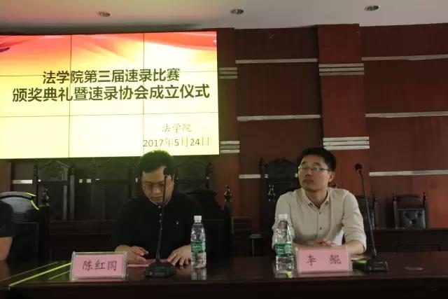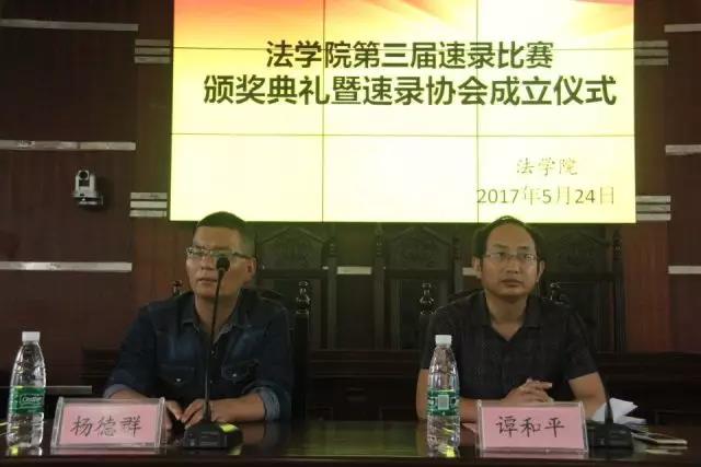 5月24日13:00,yl8cc永利官网第三届速录比赛颁奖典礼暨速录协会成立仪式于模拟法庭举行。yl8cc永利官网院长谭和平、副院长陈红国、法律系主任杨德群、法学专业教研室主任李鲲出席活动,辅导员钟佩玲主持。
