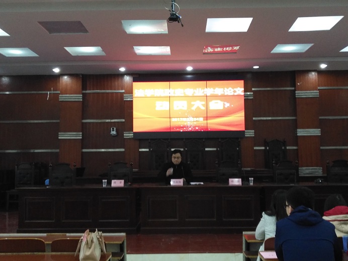 2017年3月24日上午,yl8cc永利官网政史系学年论文动员大会在模拟法庭顺利召开。2014级与2015级政教、历史专业200多位学生参加了会议。政史系主任谢芳主持会议,陈红国副院长做主要发言。陈红国副院长就学年论文写作工作做了详细的发言。陈院长主要讲了学年论文写作的重要性和意义、写作的具体注意事项以及师生之间联系事项等几个方面的内容,并号召学生认真、严肃对待学年论文的写作,努力写出一篇符合本科生素质要求的高质量论文。会后学生与负责指导论文写作的老师进行了面对面的交流和沟通。