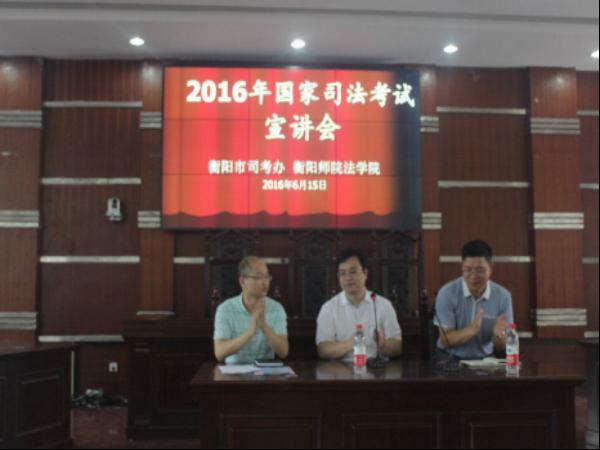 此次的动员大会我们有幸请来了衡阳市司法局政治部的谭满林主任和谢水长科长为我们会议进行精彩演讲。首先是谭主任发言,他说,司法考试无非就是三点,参加司考过程很艰辛、司考选拔中很严格、司考结束前景很远大,大家应注意心态的调整,理清自己的复习思路,注重真题。