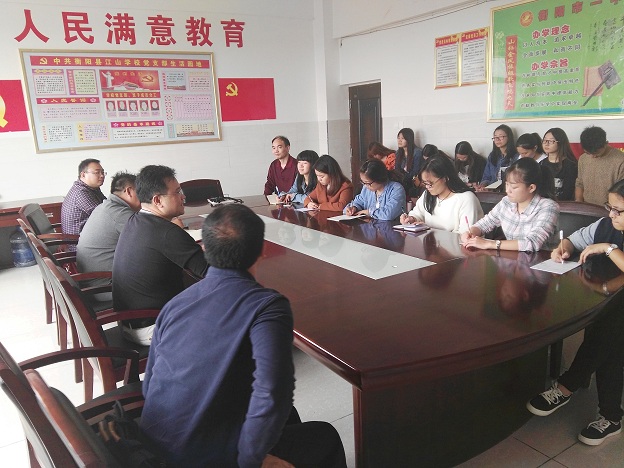 2016年10月17日上午9点,2013级思想政治教育专业学生乘坐大巴离开yl8cc永利官网,前去衡阳县江山学校参加集中实习。实习学生在陈红国副院长、谢芳老师以及彭志君老师的带领下,于上午10点左右顺利抵达江山学校。陈红国副院长、谢芳老师、彭志君老师帮助学生一起把行李搬到指定宿舍,安排好学生住宿地方。然后三位带队老师及全体实习学生,参加了江山学校副校长聂尚主持的实习学生与实习学校领导和相关教师的见面会,陈红国副院长作了主要发言。陈院长要求学生好好珍惜来之不易的实习机会,多向对方任课老师及班主任学习取经,努力提高自身综合素质;务必严格遵守实习学校规章制度;同时嘱咐实习学生注意人身安全,注重身体健康。实习交接工作顺利完成,实习学生正式走上了各自的实习岗位。