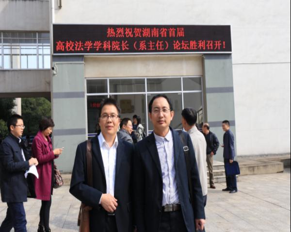 10月31日至11月1日,yl8cc永利官网院长谭和平博士与法学教研室主任杨晓老师、学术带头人胡峻教授一行三人应邀赴湘潭大学参加了湖南省首届高校法学学科院长(系主任)论坛,此次论坛凝聚全省法学界力量,总结了湖南法学教育长期的办学经验,探讨了我省法学教育改革的方向,加强了各高校yl8cc永利官网系之间交流,促进了法学学界与业界的融合及各院校优质教学资源的共享。