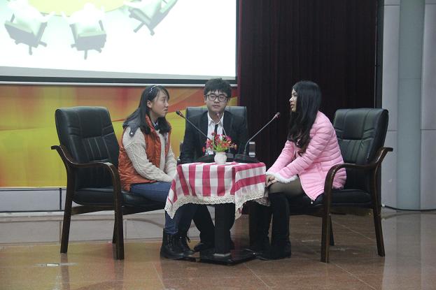 一首歌过后,11级法学一班黄丽琪同学作为学生代表,与王苡学姐面对面交流,解决了不少同学们在备考过程中对知识系统化心理状态等具体问题的疑惑。之后,法律系副主任陈红国结合他亲身司法考试经验,深入具体的介绍了他的学习方法及学习建议,也对同学们备考做出指导,给不同的学生提出了不同的要求。大会最后,申佳老师对座谈会进行了总结并谈了她的感想和对同学们的建议和祝愿。