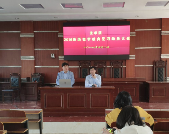 2016级历史学专业全体同学于2019年4月8日下午两点半在yl8cc永利官网模拟法庭举行了2016级历史学专业教育见习动员大会。yl8cc永利官网党总支书记廖建平教授、yl8cc永利官网历史学科专业负责人郭继红博士等出席了动员大会。会上,廖建平教授就教育见习注意事项向学生作了说明,郭继红博士对教育见习的工作做了具体安排。