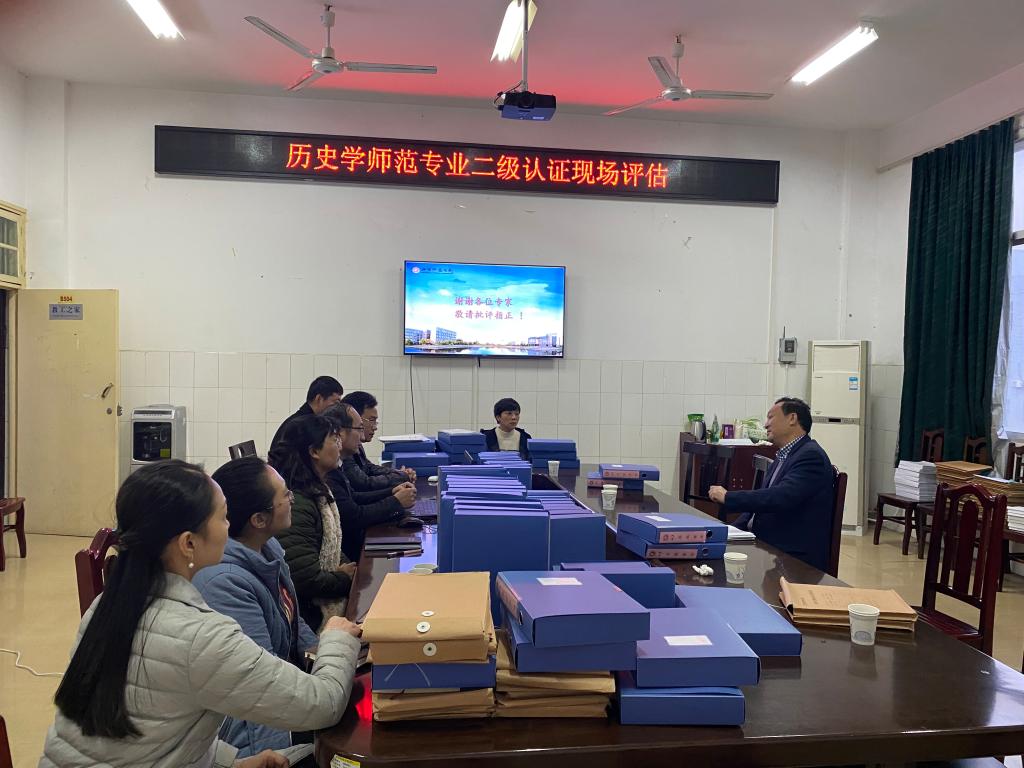 (张登玉校长和各位专家听取历史学专业师范认证评估汇报)
