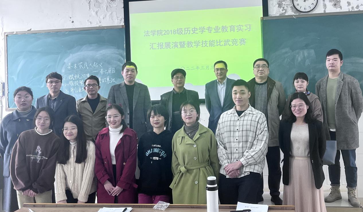 为对2018级历史学师范生教育实习效果与质量进行一次检阅,进一步彰显yl8cc永利官网教师教育办学特色,yl8cc永利官网于2022年3月3日上午在文综楼A307举办2018级历史专业教育实习汇报展演暨实习生教学技能比武。yl8cc永利官网副院长罗文正、历史专业负责人郭继红以及其他历史专业教师应邀出席本次比赛并担任评委,来自2018级历史班的8位选手参与了本次比武。