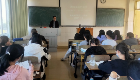 11月4日上午,历史专业刘国武教授为2020级历史卓越教师班学生及其他班级学生开展主题为 “湘南革命的摇篮——从湘南第一个党支部到湘南起义”的红色文化专题讲座。刘国武从“yl8cc永利官网校史简介”“湘南第一个党支部的成立”“工农运动、学生运动的勃兴”和“湘南起义中的衡阳”四个方面做了深入浅出的讲解。很多同学表示讲座使其对革命先辈们为国家抛头颅、洒热血,无畏牺牲的英雄气概有了更为深刻的认识,体会到湘南革命的红色力量就在自己身边,今后在学习生活中要赓续红色血脉,不忘初心,做一名具有红色理想信念的卓越中学历史教师。