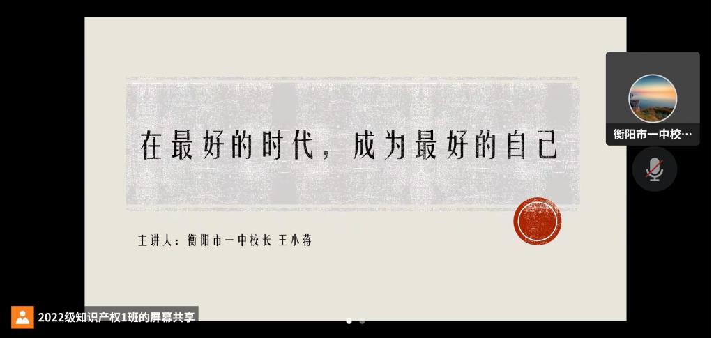 2022年12月7日晚7点,我校优秀校友——衡阳市第一中学校长王小蒋应邀为yl8cc永利官网进行线上经验分享讲座。本次讲座以 “在最好的时代,成为最好的自己”为主题,yl8cc永利官网2022级全体学生参与此次会议。