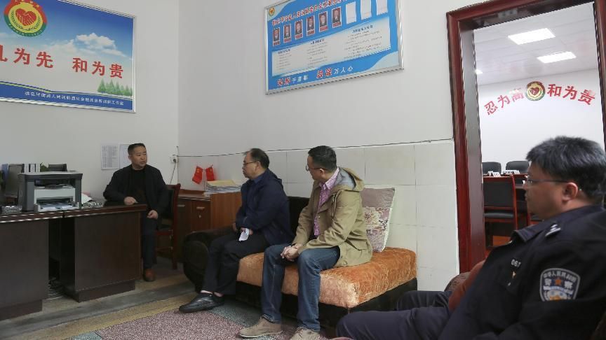 调研组首先到在隆回县桃花坪派出所调解室进行调研。桃花坪派出所所长袁旭曦、桃花坪街道人民调解委员会成员刘润堂、李青松就人民调解工作做了专题介绍。袁旭曦介绍说,桃花坪派出所调解室成立了二十个年头,调解纠纷一万余起,调解成功率百分之九十五以上,有效降低了“民转刑”案件的发生率。