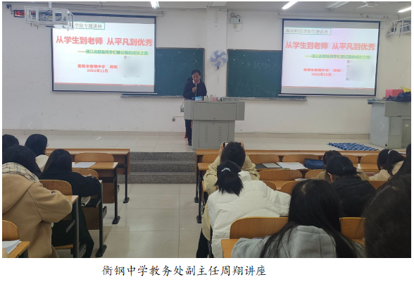 周翔讲座主题为《从学生到老师 从平凡到优秀》,认为要从一名学生转换为一名老师,并最终成为一名优秀的教师,要认知自我,不断学习,提升自我;要读懂学生,尊重学生个性,家校共育,多方合力,促使其成长成才。