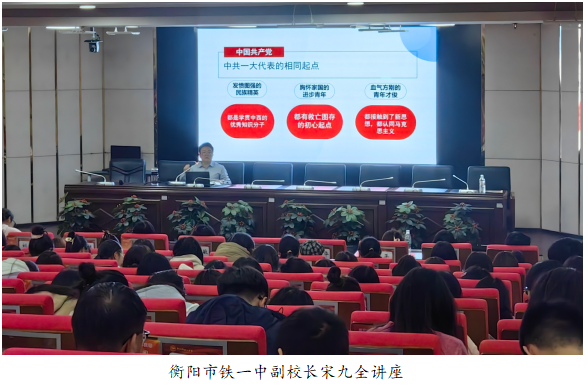 宋九全以《从一大代表的人生轨迹谈教师入职的道德修养》为讲座主题,从一大代表的人生轨迹切入,阐述了教师入职的道德修养,新教师要坚定理想信念、要有平和的心态、要不畏艰难困苦、要有和谐的人际关系、要追求卓越永无止境,