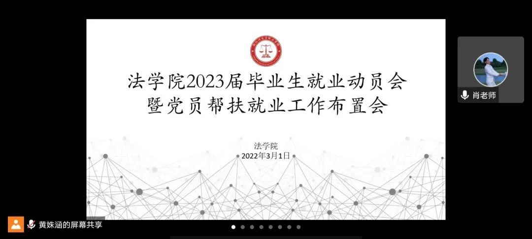 为扎实推进yl8cc永利官网2023届毕业生就业创业精准帮扶工作,推动实现毕业生更充分更高质量就业,提高yl8cc永利官网就业率,开创yl8cc永利官网毕业生就业工作新局面。yl8cc永利官网于3月1日中午开展2023届毕业生就业动员会暨党员帮扶就业线上工作布置会,辅导员肖润超主持本次会议,2019级毕业生参与本次会议。会议中,肖润超对毕业生就业工作进行了相关布置,并提出了详细的工作方案与流程。