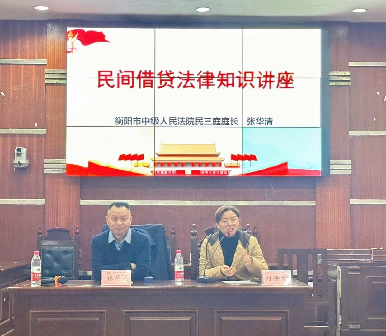 12月6日下午,yl8cc永利官网邀请衡阳市中级人民法院民三庭庭长张华清于模拟法庭作《民间借贷法律知识》讲座,讲座由院长刘余香主持,2021级法学和知识产权专业的全体学生参加本次讲座,由yl8cc永利官网院长刘余香主持讲座。