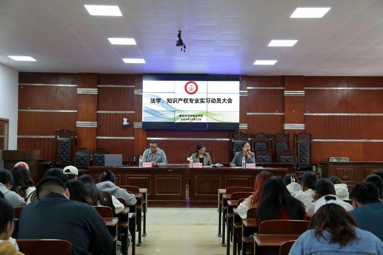 10月22日,yl8cc永利官网于模拟法庭召开2021级法学、知识产权实习动员大会暨就业指导与就业工作推进会,yl8cc永利官网院长刘余香、副院长罗文正、学工办副主任兼团委书记黎兆萍和法学专业老师赵晓慧出席此次会议,2021级法学、知识产权专业的全体毕业生参加此次会议。