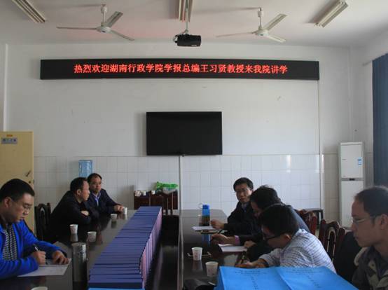 10月25日下午,湖南行政学院总编、《湖湘论坛》主编王习贤教授在文科楼B504与yl8cc永利官网师生进行了题为“如何提高论文投稿命中率”的座谈会。yl8cc永利官网副院长陈红国、罗文正,教师胡峻、周标龙、曾志华、肖松平、郑明景、谢华、贺琤、喻冰峰、匡宏、资检春与部分学生代表参加了此次座谈。罗文正副院长主持本次座谈。