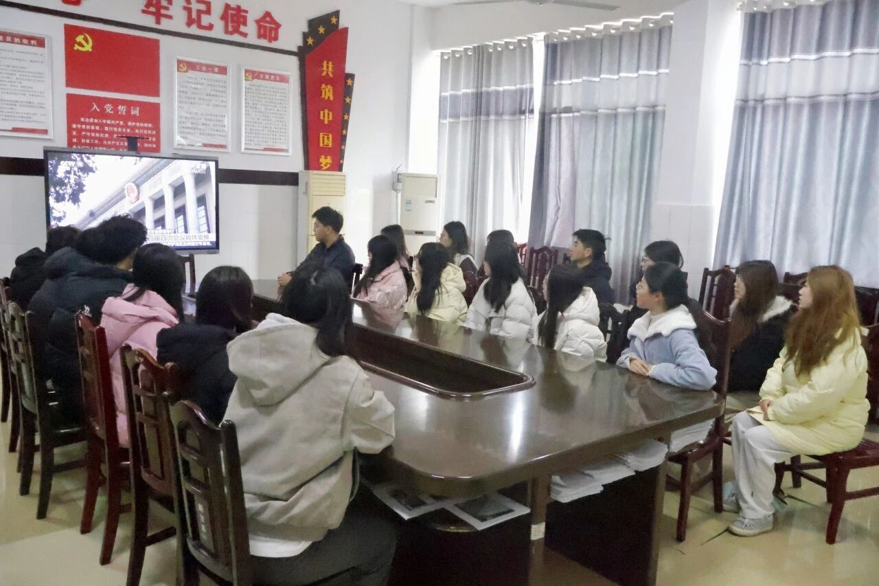 3月8日上午,学生干部于仁智楼B407集中收看两会直播。现场学习氛围浓厚、秩序井然,全体人员聚精会神,认真聆听政府工作报告,深入思考关于“十五五”规划纲要草案的重要意义。当视频呈现政协委员深入调研、为科学决策提供参考的过程,以及新修订提案工作条例所建立的全流程反馈机制时,大家目不转睛,凝眉思索,屏幕内外,两会精神浸润人心,同学们对国家发展大局与时代使命有了更深切的领会。