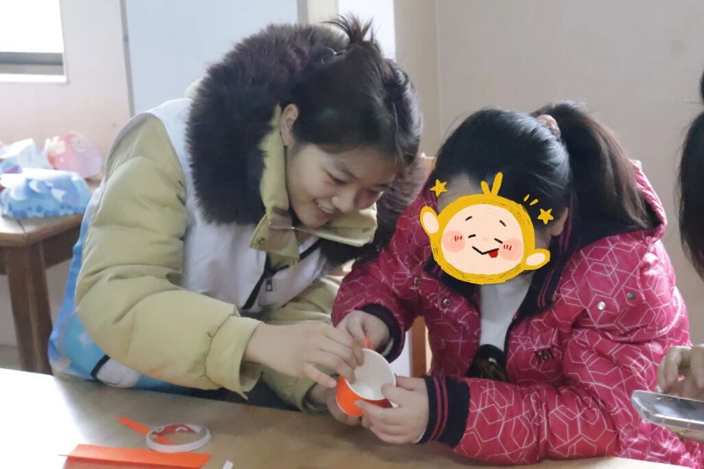 纸杯风车制作环节,一个个纸杯在志愿者和孩子们手中经过剪裁、涂色、组装,摇身一变成为了随风旋转的手工风车。孩子们全神贯注地投身创作中,志愿者们陪伴在侧,共同感受这份简单而纯粹的快乐,在创意实践中传递着动手创造的乐趣。