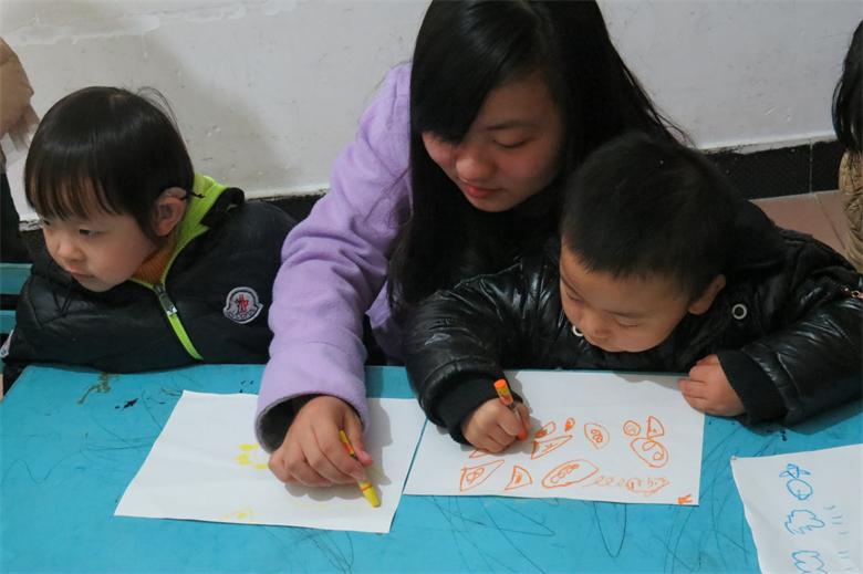 图一 我系志愿者教孩子画画