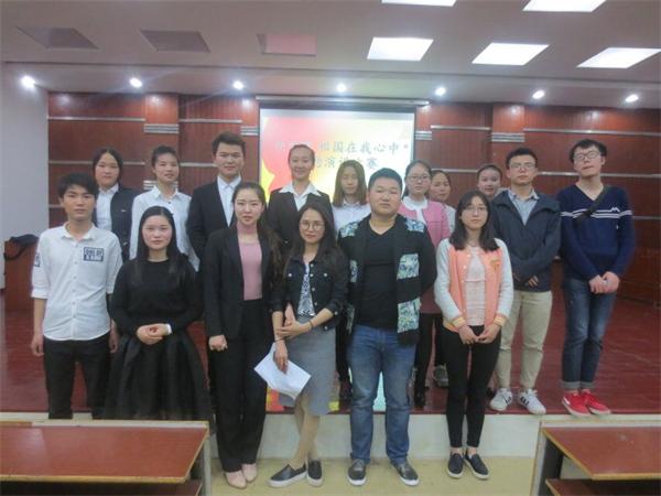 比赛中参赛选手围绕“祖国在我心中”这一主题回顾了我们伟大祖国上下五千年的历史,以极富表现力的演讲铿锵有力的语言,将中华民族的精神风貌全面展现,震撼着在场听众的心灵参赛选手或淡定从容,或激情四射,但无一例外表达了对祖国的真挚感情获得了台下观众的阵阵掌声。14级法学1班唐雅萱以原创古诗词表达拳拳爱国心,一句“滔滔长江水,滚滚黄河流”将其对祖国的热爱表达的淋漓尽致14级知识产权1班的孔杉以叙述方法列举了中华历史上从古至今为国捐躯爱国人士和伟人事迹,以精炼的语言将人物描述得栩栩如生。参赛选手或激扬或低沉,展示着赤诚爱国心,台下同学屏息聆听,热血沸腾,响起阵阵热烈的掌声最后主持人宣布比赛结果,15级法学1班廖逸鸣摘得此次比赛的桂冠,15级法学2班邓淑媛荣获二等奖,14级法学1班唐雅萱获得三等奖。