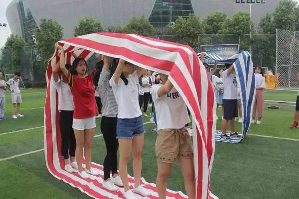 此次活动将17级转段生分为了两大队,每队三组,分别由辅导员翁敏和黎兆萍带队。活动主要由爱的抱抱、趣味接力赛跑、无敌风火轮、十人跳绳和拔河比赛组成。