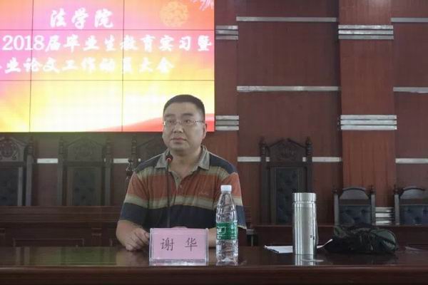 9月12日下午4点,yl8cc永利官网于模拟法庭召开了政史系2018届毕业生教育实习暨毕业论文工作动员大会。此次大会由历史系主任谢华主持,yl8cc永利官网院长谭和平、政教系主任谢芳以及2018届毕业论文指导老师出席此次动员大会,2018届毕业生参加了此次会议。