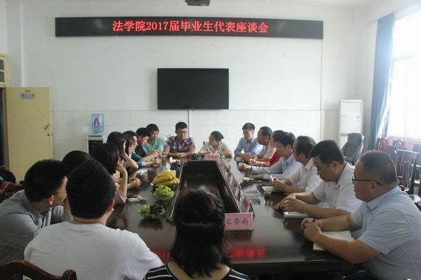 6月6日下午3点,我院于文b五楼会议室召开2017届毕业生代表座谈会。我院党总支书记廖建平、院长谭和平、党总支副书记谢琳、副院长陈红国出席,辅导员王鲁南、钟佩玲、13级政教班班主任贺寿南以及13级毕业生代表参加会议。