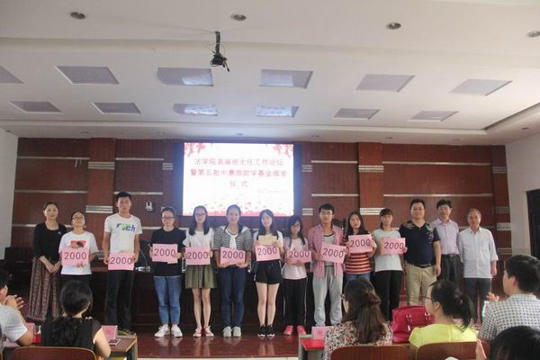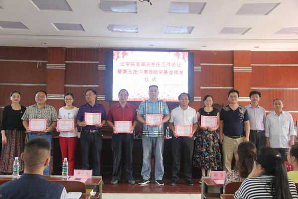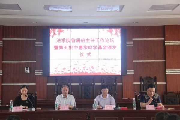 6月21日下午四点,yl8cc永利官网于模拟法庭举行了yl8cc永利官网首届班主任工作论坛暨第五批“中惠旅”助学金颁发仪式。莅临现场的嘉宾有原yl8cc永利官网党校常务副校长苏维汉、yl8cc永利官网党总支书记廖建平、党总支副书记谢琳、副院长陈红国以及各班班主任。党总支副书记谢琳主持此次大会。
