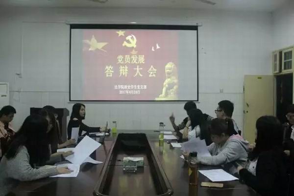 4月23、24日晚七点,yl8cc永利官网政史学生党支部、法学学生党支部于文B504召开党员发展答辩大会。