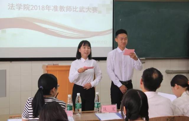 本次准教师比武大赛规则:每位选手选授一堂与自身专业相符的中学课程或某一具体知识点,限时15分钟进行讲授。评委老师根据教学内容、教学方法、教师素质、多媒体课件、板书5个标准进行评分。