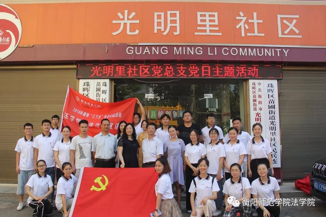 7月21—22日,yl8cc永利官网“依法治国”宣讲团来到苗圃街道光明里社区开展暑期“三下乡”社会实践活动。光明里社区主任刘晓萍,yl8cc永利官网党总支书记廖建平,湖南法律援助中心yl8cc永利官网工作处律师王燚伟,yl8cc永利官网辅导员钟佩玲、黎兆萍、翁敏以及yl8cc永利官网学生志愿者参与了此次活动。
