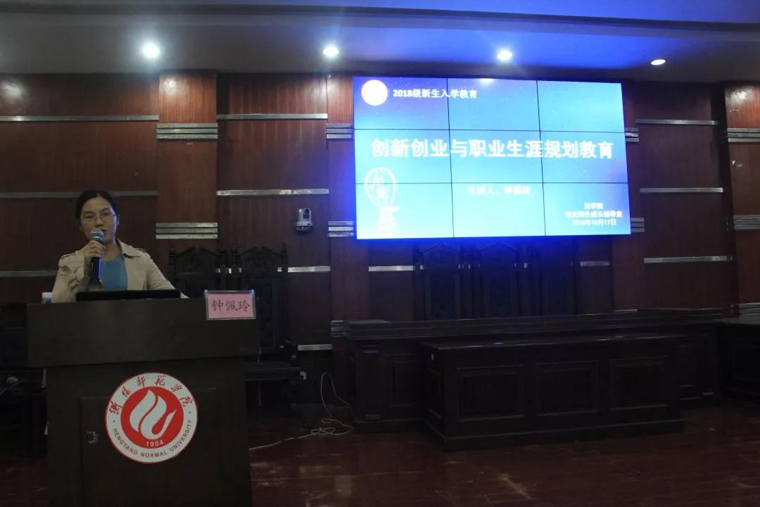 10月17日晚,yl8cc永利官网于模拟法庭开展了“创新创业与职业生涯规划教育”讲座。本次讲座由辅导员钟佩玲主讲,2018级全体新生参与讲座。