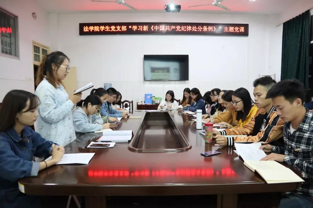 10月12日晚,yl8cc永利官网学生党支部在文综楼五楼会议室开展新《中国共产党纪律处分条例》党课学习活动,此次党课由政史学生支部书记杨洋主讲,yl8cc永利官网20余学生党员参加活动。