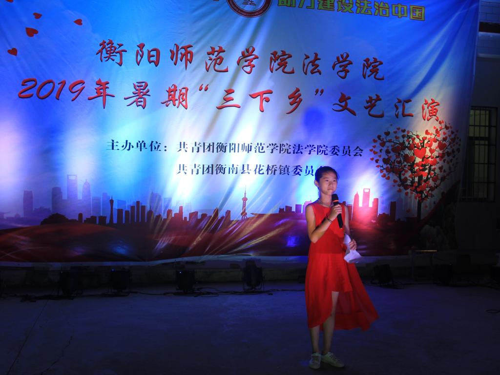 8月25日至31日,yl8cc永利官网,永利官网地址暑期“三下乡”“依法治国”社会实践团20余名志愿者在衡南县花桥镇团委的支持下奔赴花桥镇石丘村开展了为期7天的社会实践活动。团队分为普法组、支教组,为石丘村200余名小朋友和村民开展普法宣传教育、爱心支教及文艺汇演,助力建设法治农村,助推全面依法治国。