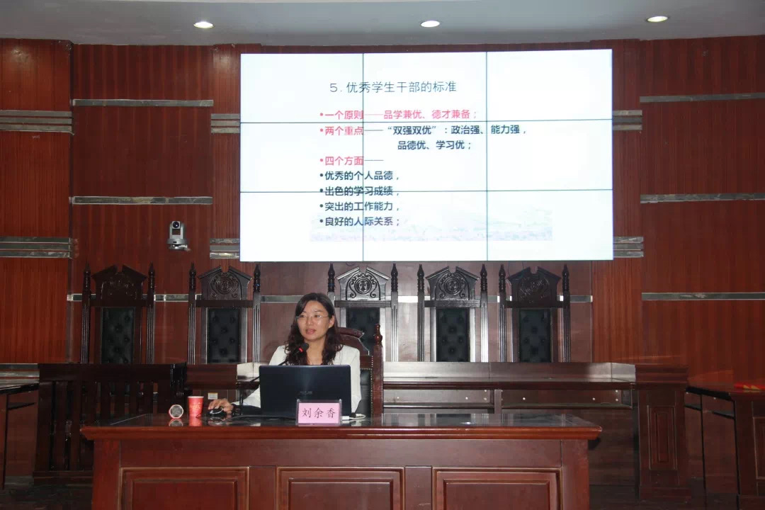 11月13日晚,yl8cc永利官网党总支书记刘余香以“如何成为一名优秀的学生干部”为题给学院全体学生干部上了一堂生动实用的课程。