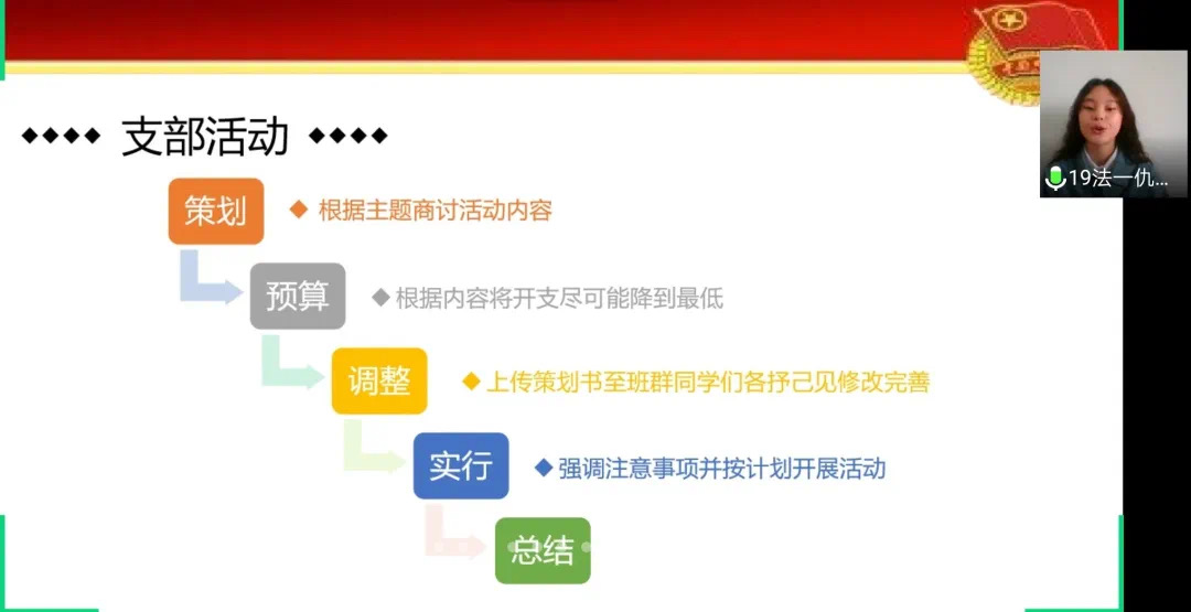大会尾声,谢琳进行总结点评。首先,她充分肯定了参选团支部和幕后工作者的辛苦付出,特殊时期能将答辩大会举办得有声有色,体现了yl8cc永利官网有条不紊、克服万难的工作态度和能力,彰显了各团支部的出色风采。她指出,从革命时代到新时代,青年在任何时候都有一种精神,是有理想、有本领、有担当的一代。疫情期间,yl8cc永利官网青年团员积极投身基层战“疫”一线,展现了yl8cc永利官网学子迎难而上、勇于担当的精神品质。最后,她寄语与会人员,“在这个万众一心、共抗疫情的特殊时刻,作为新时代大学生,要敢为人先,谨记习总书记‘志存高远、德才并重、情理兼修、勇于开拓’的十六字诀,让奋斗成为青春最亮的底色!”