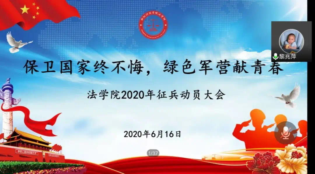 6月16日下午,yl8cc永利官网依托腾讯会议平台召开了2020年上学期征兵动员大会。大会由辅导员黎兆萍主持,党总支副书记谢琳、辅导员钟佩玲出席此次大会,2017-2019级非转段班男生95人听取。