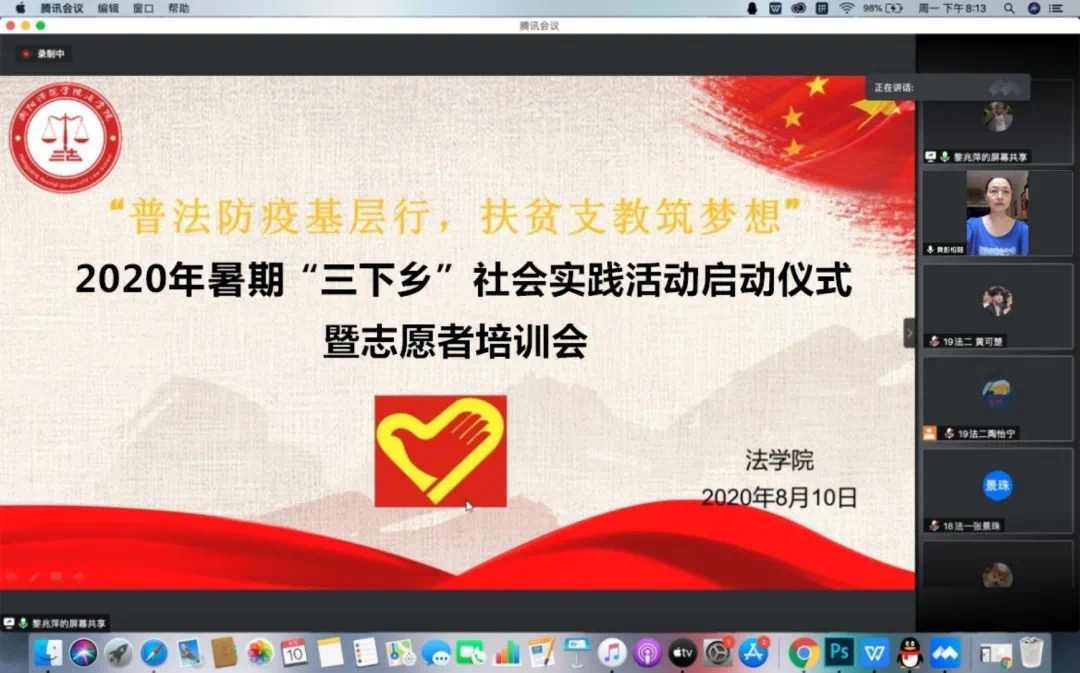 8月10日晚,yl8cc永利官网依托腾讯会议平台召开了2020年暑期“三下乡”社会实践活动启动仪式暨志愿者培训会。yl8cc永利官网党总支书记刘余香,党总支副书记谢琳,分团委书记黎兆萍以及29名志愿者参与会议。此次会议由分团委书记黎兆萍主持。