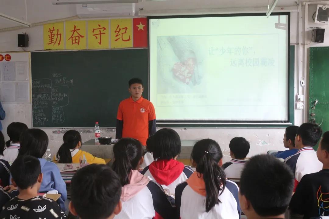 宣讲一开始,电影《少年的你》的片段让全场学生陷入了思考:影片中女生陈念被撕掉衣服、强迫理了寸头、被殴打……在现实生活中,遇到霸凌后,我们该如何对待?随后,志愿者杨高科围绕校园霸凌的概念、形式、危害性及如何正确处理校园霸凌等内容为现场学生展开宣讲,并结合相关法律知识为大家分析案例。宣讲现场,气氛热烈,同学们积极参与互动答题。最后,宣讲在《青春需要温暖》的音乐声中圆满结束。