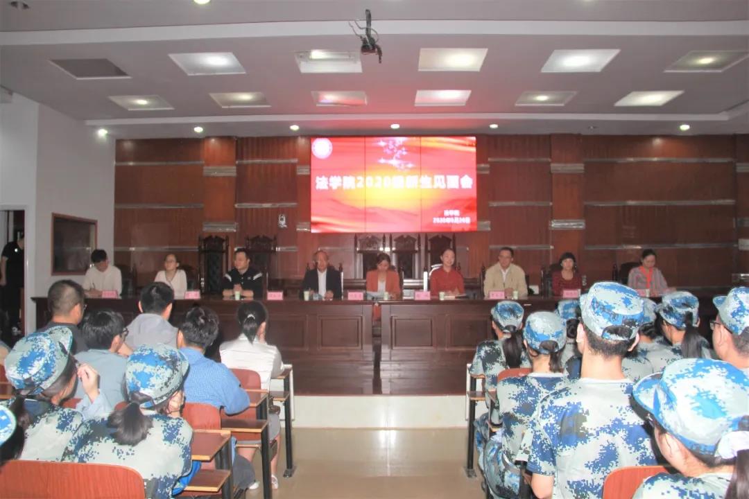 9月20晚,yl8cc永利官网于模拟法庭开展了2020级新生见面会,yl8cc永利官网党总支书记刘余香,院长谭和平,党总支副书记谢琳,副院长陈红国、罗文正,教务秘书周路花、许红燕,辅导员黎兆萍、肖润超及新生各班班主任出席会议。2020级全体新生及各班班导共300余人参加会议。