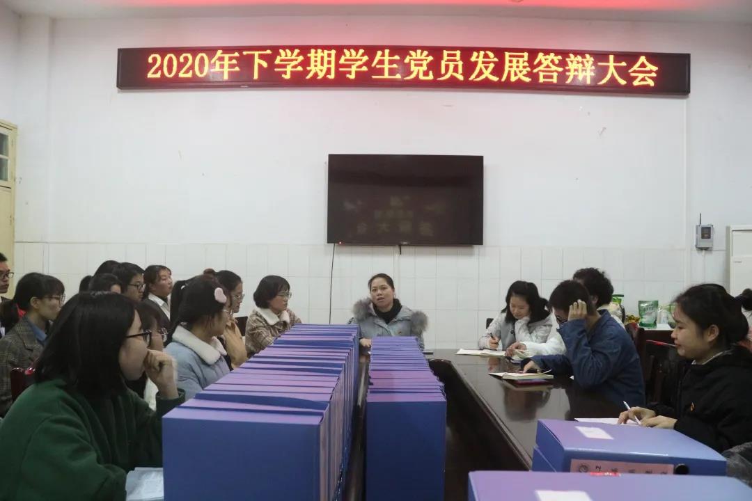 发展对象还对党员和学生代表提出的“成为学生干部对自己思想上的帮助”、“如何平衡学习和工作”、“如何改正自身的不足”等问题作出了回答。会议最后,黎兆萍对全体发展对象的答辩情况进行了总结。她肯定了大家的答辩态度,但表示仍有个别同学的理论功底需要加强。同时,她对全体发展对象提出以下要求:第一,自觉地学习理论知识,注重党的相关知识的积累;第二,端正入党动机,先在思想上入党,让思想引领行为;第三,明确自身定位,不断要求进步。她寄语大家,组织上入党一生一次,思想上入党一生一世,要将实现共产主义作为自己的远大理想和终生追求。
