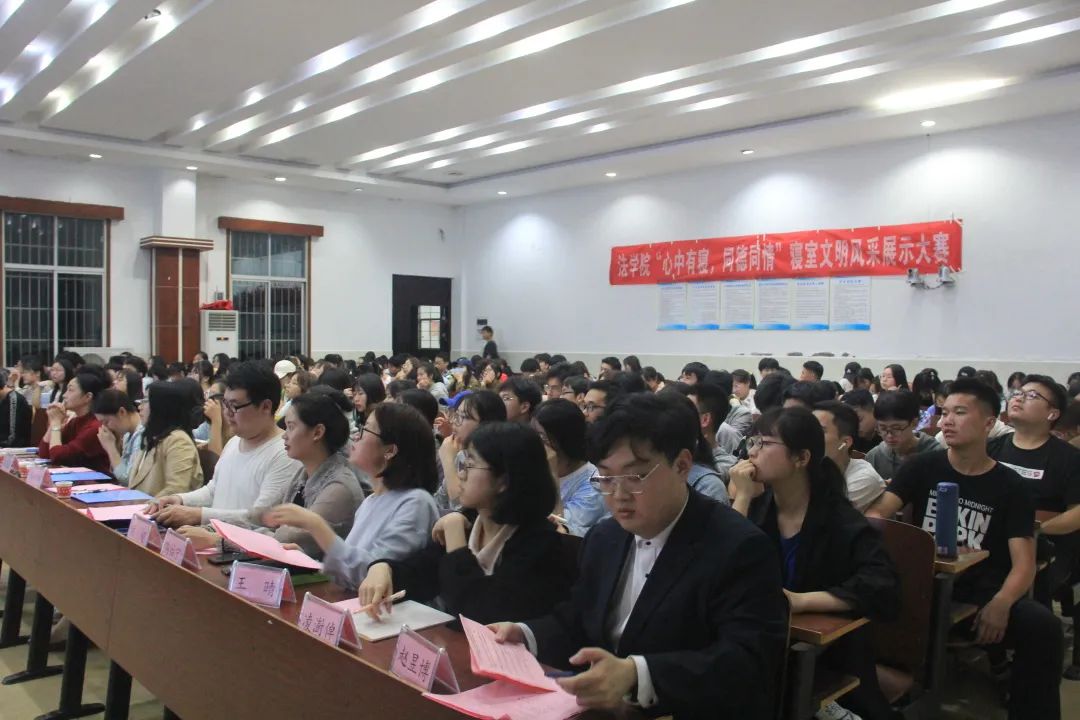 4月21日晚,yl8cc永利官网于模拟法庭举行四月文明素养提升工程启动仪式暨“心中有寝,同德同情”寝室文明风采大赛。yl8cc永利官网党总支副书记谢琳,团委书记、辅导员黎兆萍,辅导员肖润超、彭婷婷,分团委学生会主席团成员出席活动并担任大赛的评委。