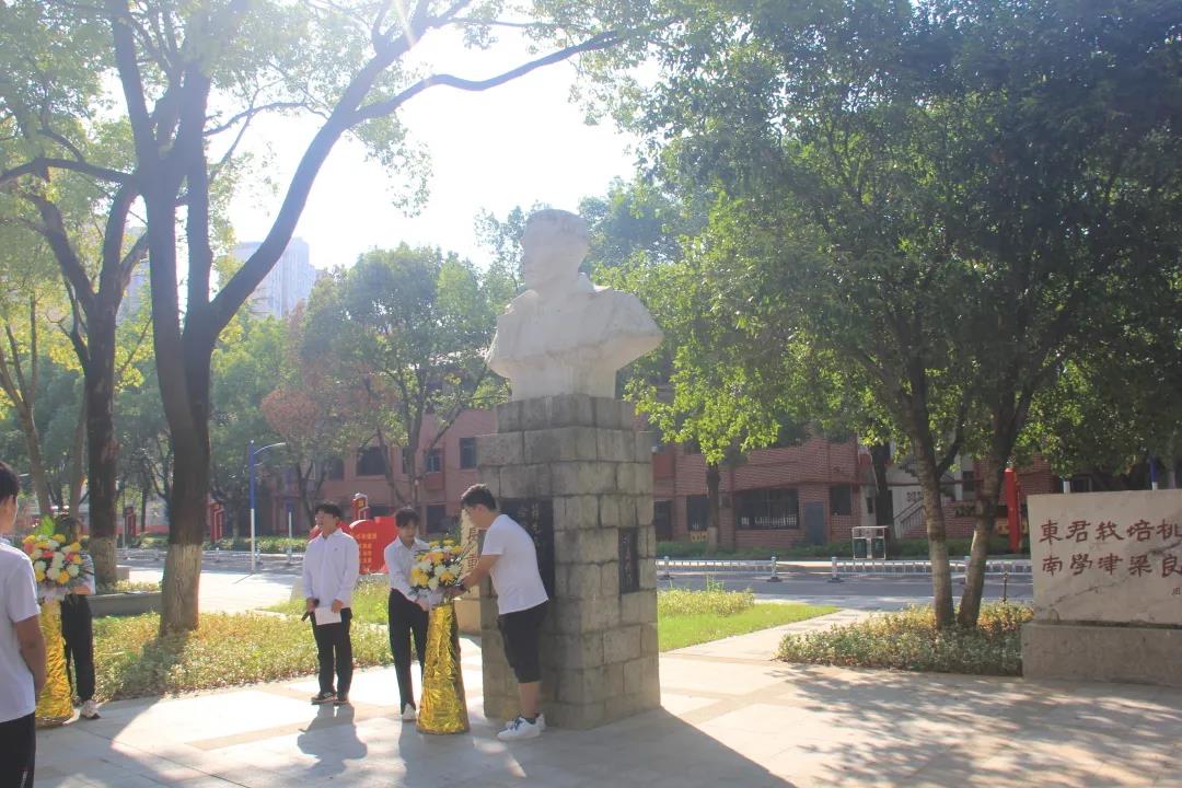 学生代表向蒋先云烈士雕像敬献花篮,全体师生默哀一分钟,向烈士表达崇高的敬意和深切的悼念。随后,团委副书记夏琳带领全体成员重温入团誓词。