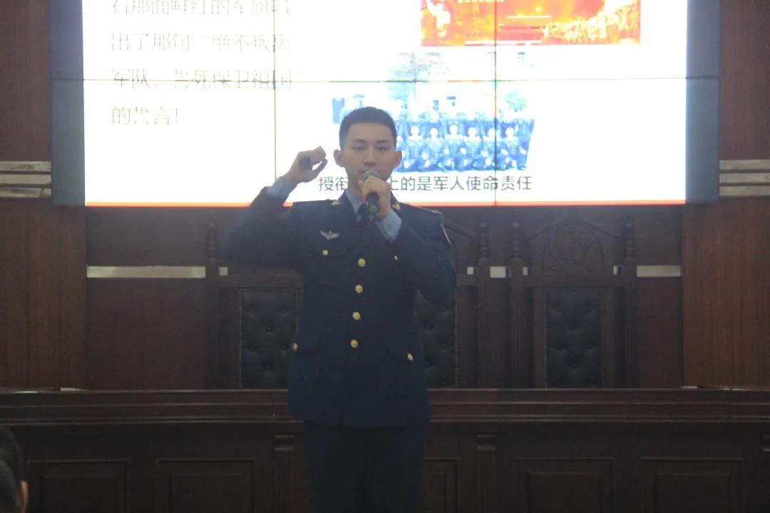 yl8cc永利官网2020级法学2班吴钧潮以国漫《那年那兔那些事儿》为线索,回忆了令他热血沸腾的剧情和加入军队的初心。他分享了自己的军旅生涯,如数家珍地讲述着从新兵连到北京空军指挥学院的点点滴滴。他引用习近平总书记在抗美援朝70周年上的讲话,指出中华民族要向着全面建设社会主义现代化国家新征程,向着实现中华民族伟大复兴的中国梦,继续奋勇前进!他表示青年兴则国家兴,青年强则国家强,青年一代有理想有本领有担当,国家就有前途,民族就有希望!他呼吁同学们将最美好的青春献给最可爱的祖国,青春之火为理想而燃烧,青春之路为家国而奋斗!