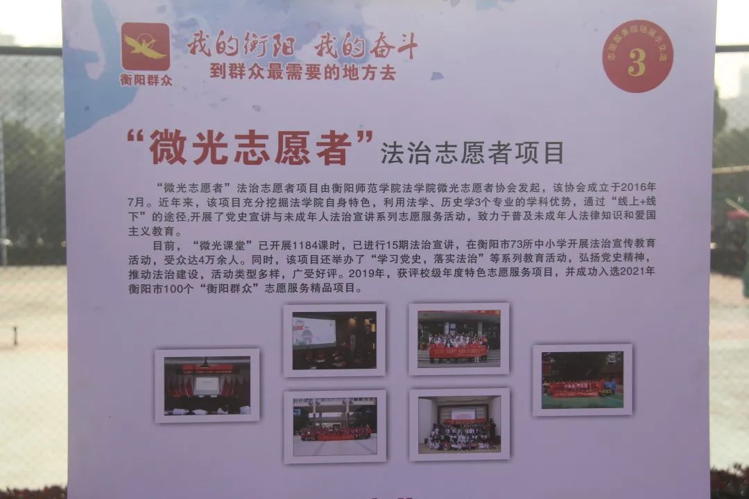 3月2日上午,在平湖公园足球场举行的百万“衡阳群众”“3.5”志愿服务主题实践暨《衡阳市文明行为促进条例》集中宣传月活动启动仪式上,yl8cc永利官网“微光志愿者”法治志愿者项目团队成功入选为全市23个志愿精品项目。