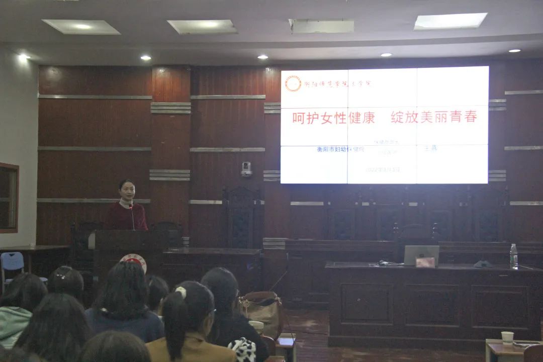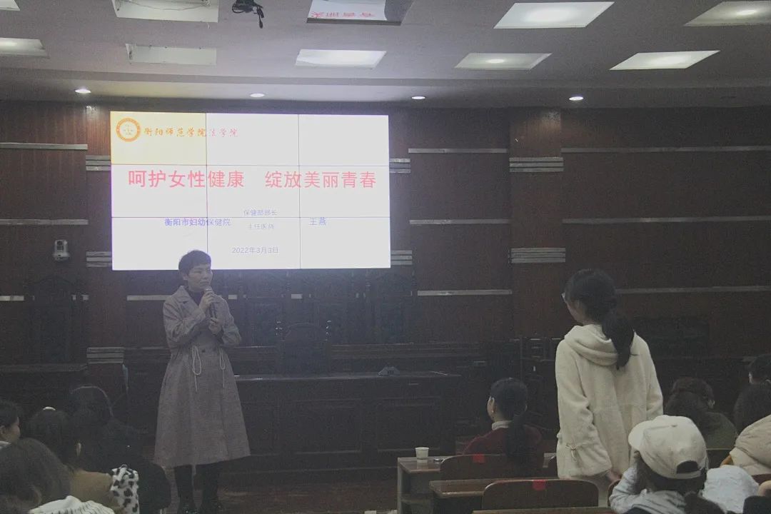 为关爱女性生理健康,提升健康知识水平,yl8cc永利官网于3月3日晚在东校区模拟法庭开展了“呵护女性健康,绽放美丽青春”的主题讲座。衡阳市妇幼保健院保健部部长王燕担任本次讲座的主讲人,衡阳市妇幼保健院纪委书记张琼,市场部部长阳文丰,yl8cc永利官网院长刘余香,副书记谢琳出席本次讲座。2020级全体女性学生参加本次讲座。