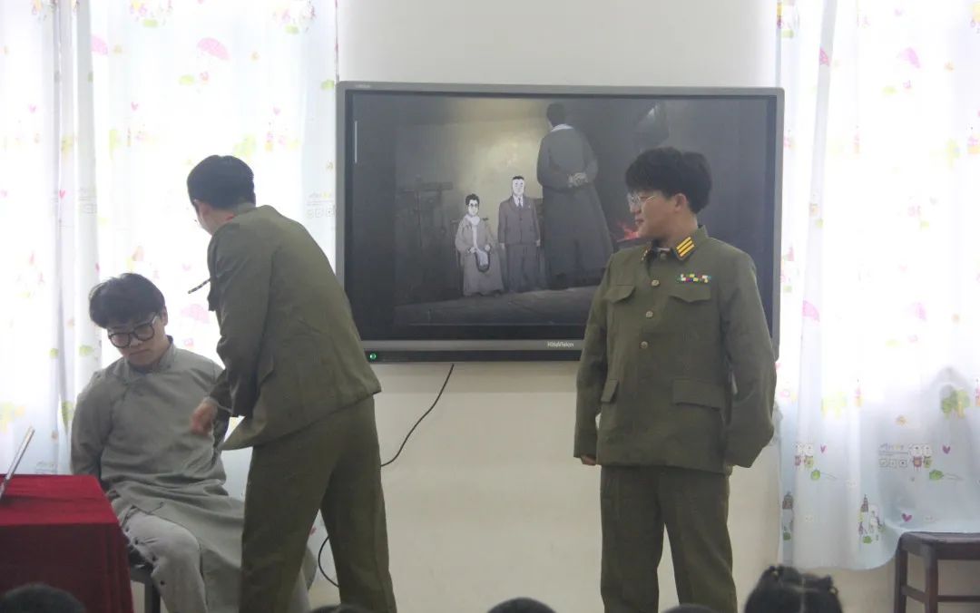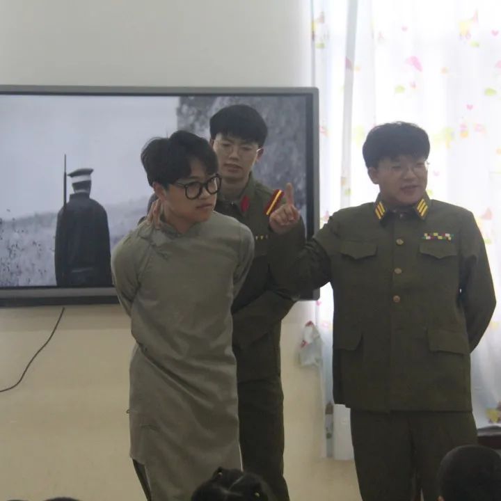 yl8cc永利官网志愿者还通过情景剧的方式精心演绎了夏明翰为共产主义事业而奋斗的一生。他们将自己对党对国家的深厚情感融入此次表演,热血还原了夏明翰的英雄事迹。在表演过程中,演员们通过“宝藏保密”的小游戏,让小朋友们保守住“宝藏”,即不让夏明翰被坏人带走。演出结尾,老师带领小朋友大声读出了夏明翰所留下的信件内容——“祖国万岁!”小朋友们被代入到剧情中,感受到革命先辈们进行革命的艰苦和不易,对革命先辈们大义凛然、为民牺牲的革命精神有了进一步的理解。