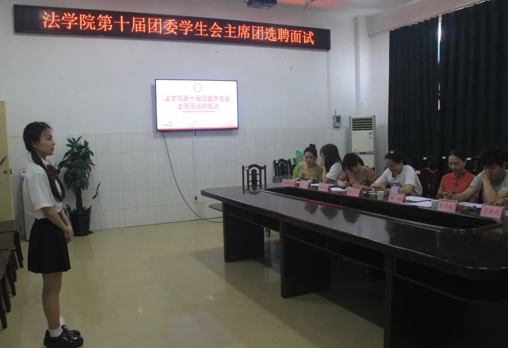 为更好地服务于yl8cc永利官网,本着德才兼备、公平公正公开和择优聘用的原则,6月3日下午,yl8cc永利官网于东校区文综楼B504会议室举行第十届团委学生会干部选聘面试。党总支副书记谢琳、辅导员黎兆萍、肖润超、彭婷婷及第九届团委学生会主席团担任本次换届面试评委。