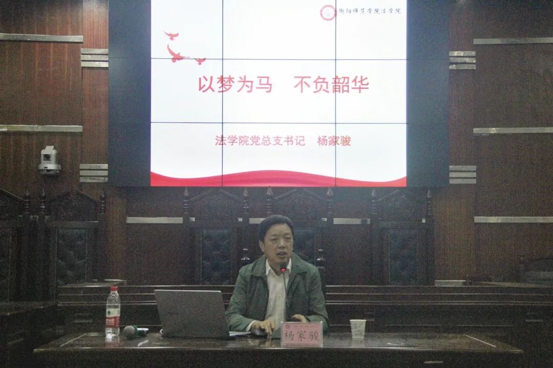2022年10月5日、10月7日晚,yl8cc永利官网于模拟法庭开展了以理想信念为主题的新生入学教育讲座。yl8cc永利官网党总支书记杨家骏作了题为“以梦为马,不负韶华”的主题讲座,2022级全体新生分别聆听此次讲座。