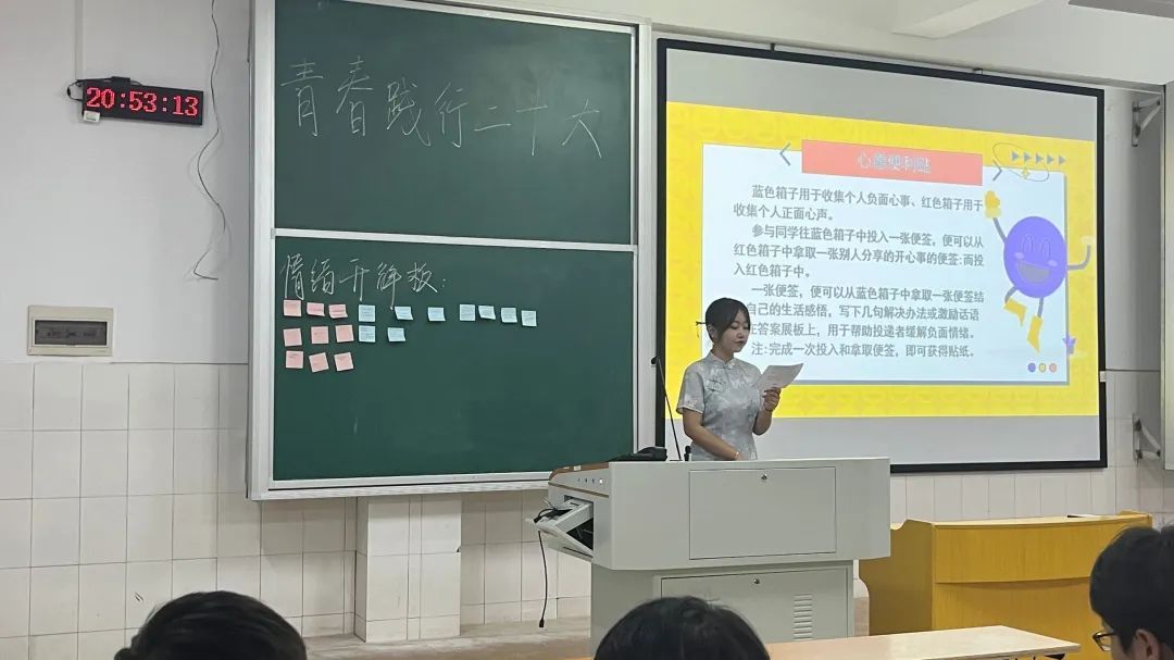 活动主要分为观看心理健康宣传片、开展趣味小游戏、分享心愿便利贴三个环节。